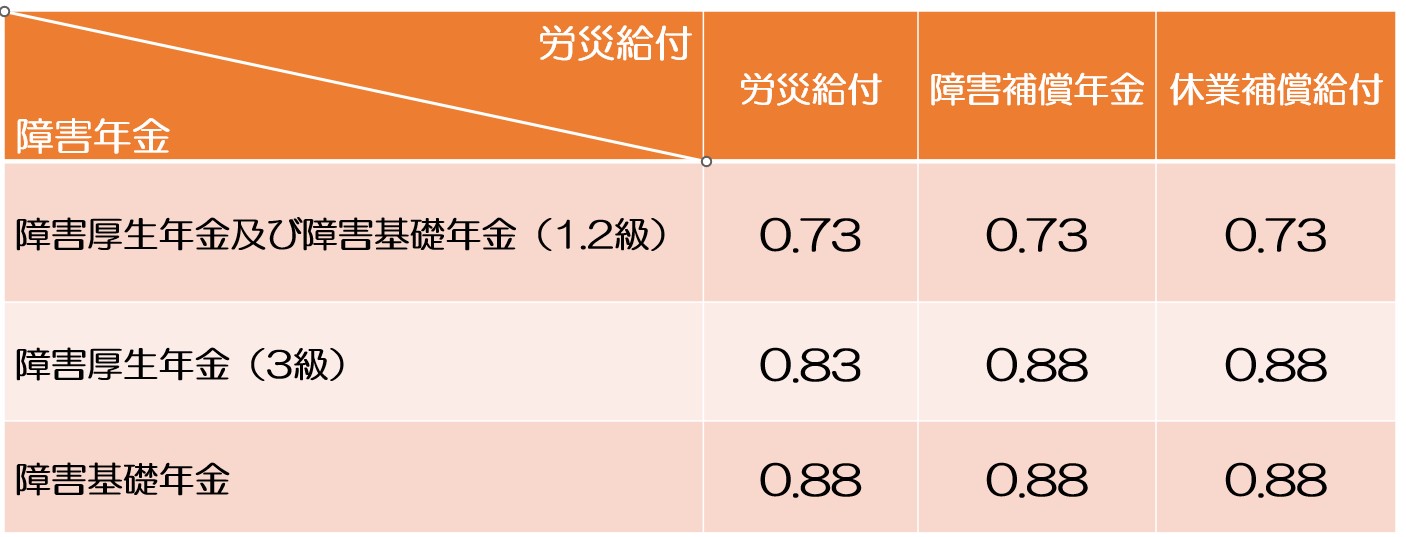 受給している障害年金の種類に応じて、労災からの給付が減額されます。