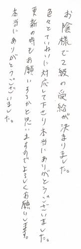 無知とは恐ろしい事であると思いました。私のわかりづらい話もちゃんと聞いて下さり、拓さんサポートして頂いたお蔭で2級を受ける事ができました事、とても感謝しております!