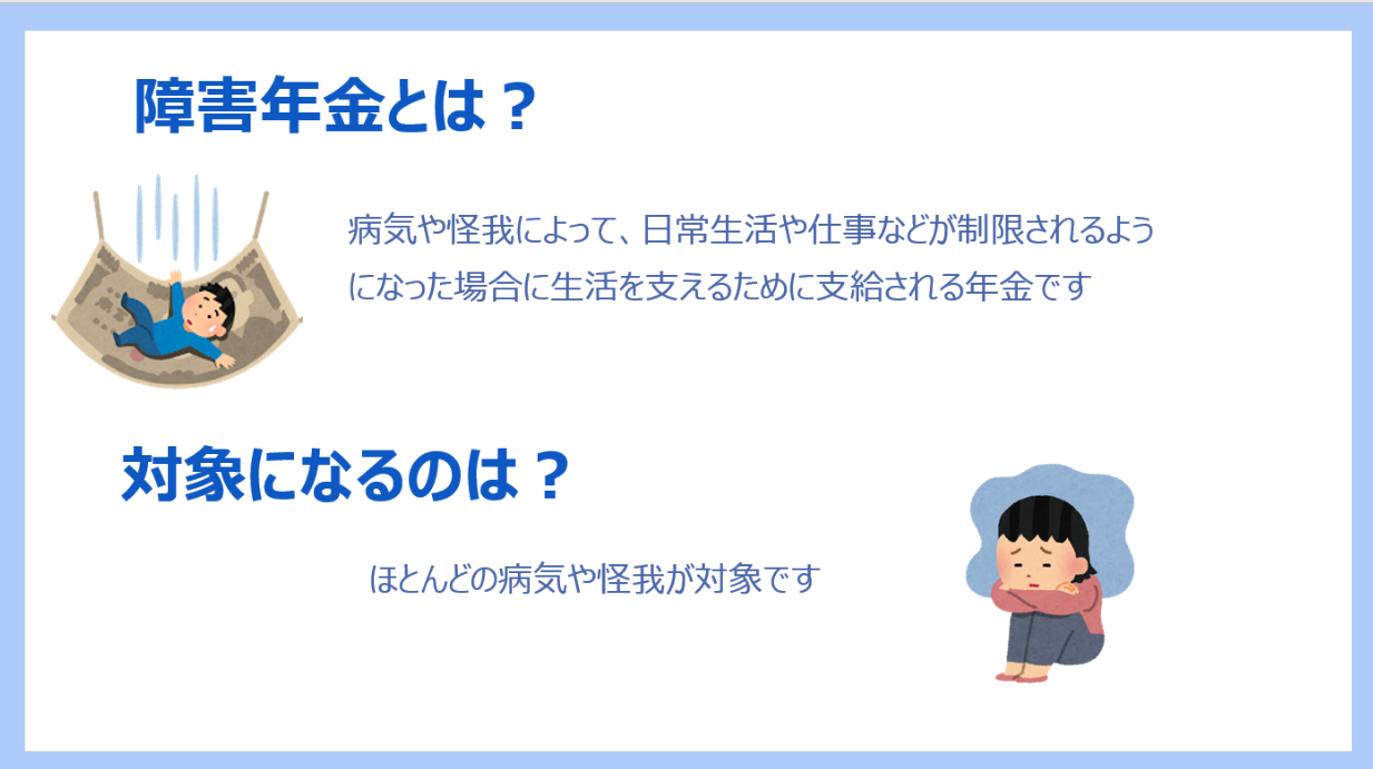 就労移行支援事業所 Spirit大森センターにて 障害年金についてどんな疾病が対象か、受給するためには・・・などについて、説明させて頂きました。
