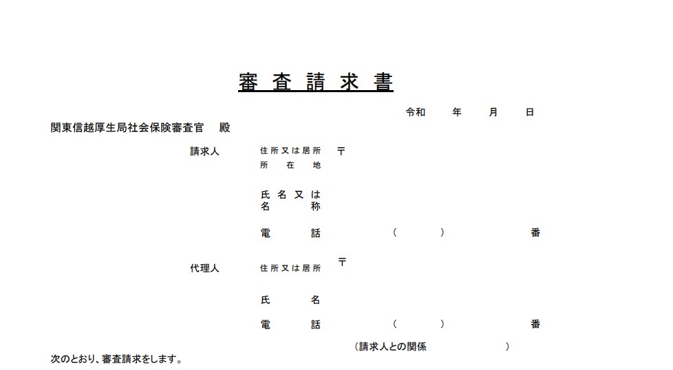 社会保険審査事務室(下記のリンクから、関東信越厚生局の審査請求書のダウンロードができます)