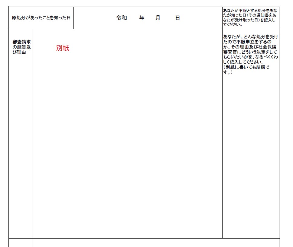 原則としては記載要領にそって記載すれば良いですが、記載項目の中に「審査請求の趣旨及び理由」という欄があり、ここには注意が必要です。
