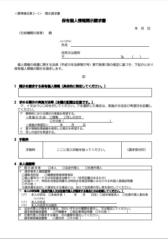 開示請求は本人確認書と住民票、300円の手数料が必要です。